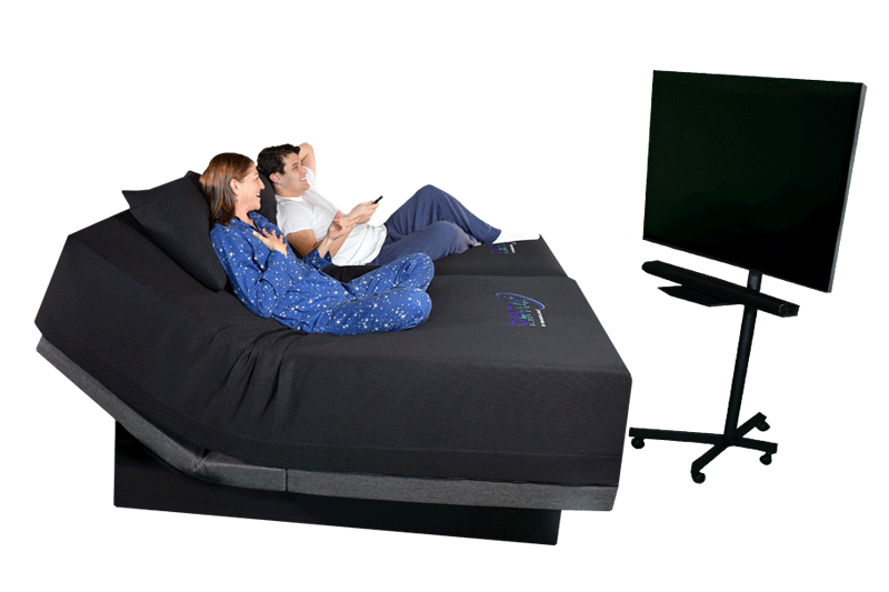 Adjustable, king size Delta Sleep System that comes with a large screen TV.